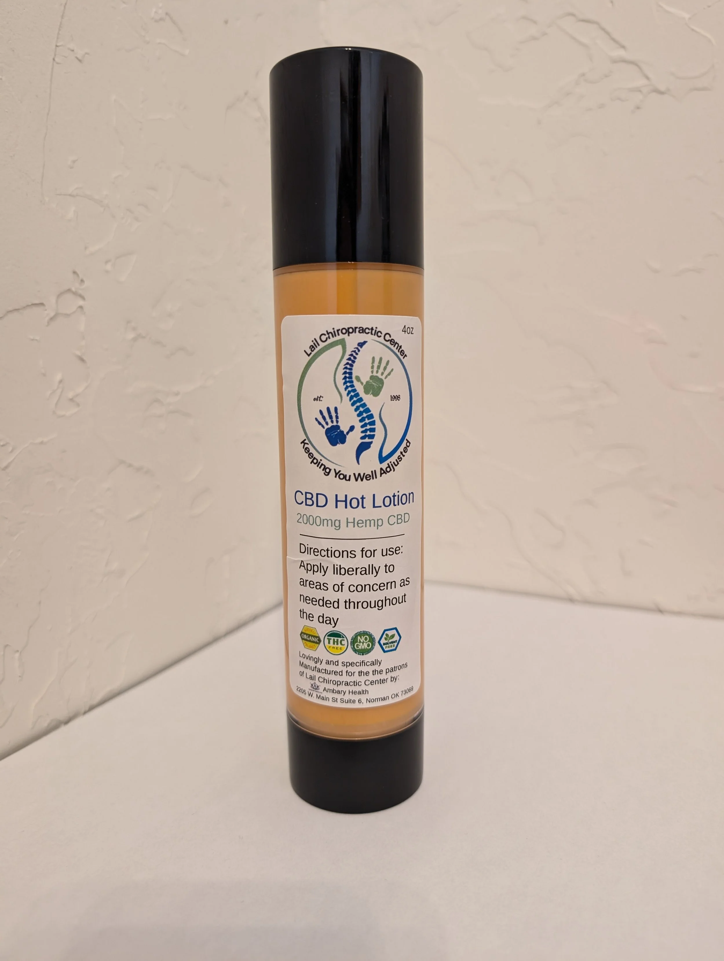This is a Lail Chiropractic Center specialty lotion, formulated with 2,000mg of Hemp CBD to help provide a warming relief of aches and pains.